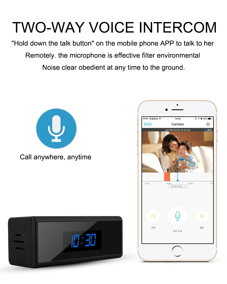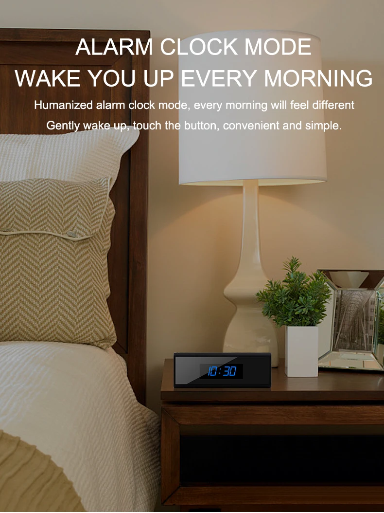 Two-way talkback micro mini bluetooth wireless hidden spy camera wifi with alarm clock TouchKey HD1080P