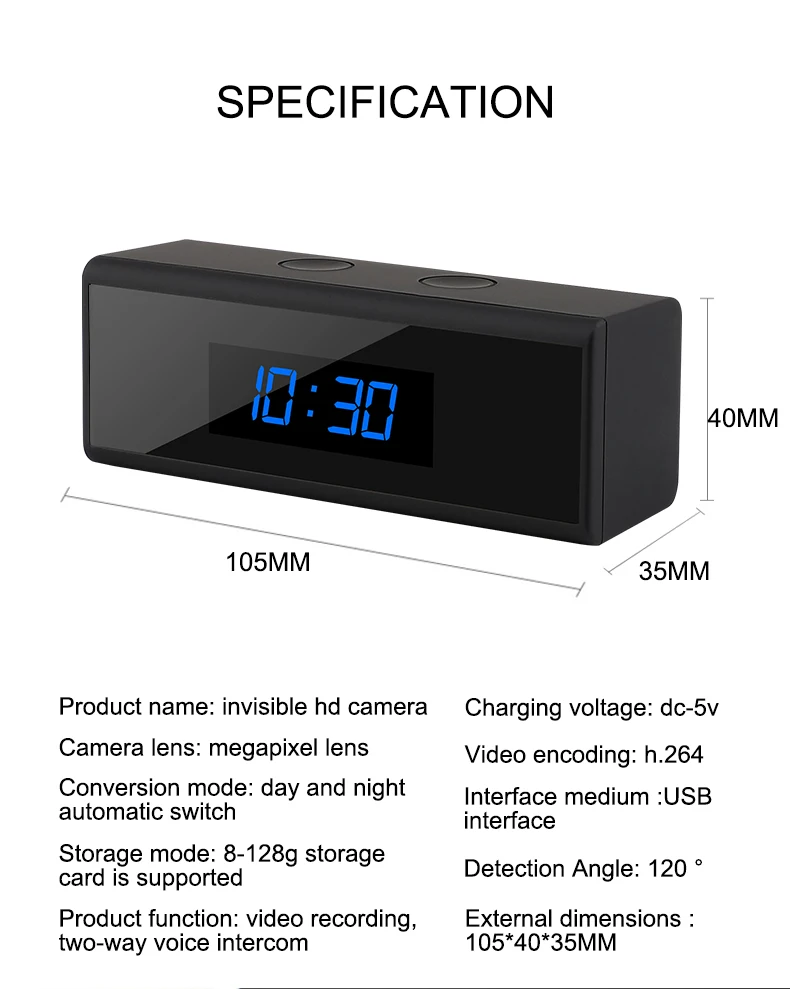| Single gross weight: | 0.22 KG; | Camera Shape: | Clock; |