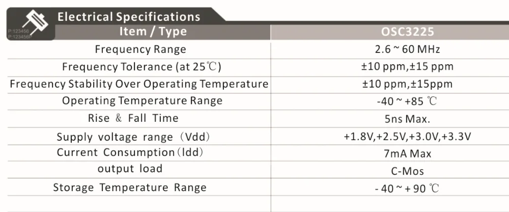 | Rise&Fall Time: | 5ns Max; | Model Number: | OSC3225 Series; |