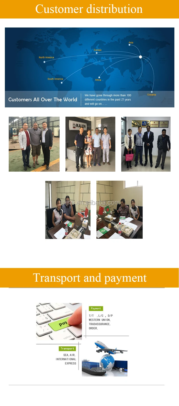 Payment: 30% T/T DEPOSIT PAYMENT IN ADVANCE, BALANCE AGAINST COPY OF B/L; WESTERN UNION, TRAD ASSURANCE ORDER, L/C.