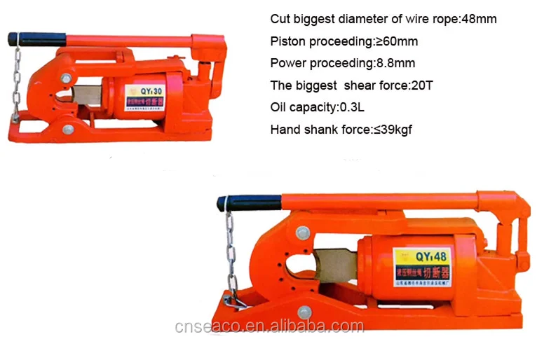 | Product name: | Hot Sale High Strength Hydraulic Steel Wire Rope Cutter QY48/QY30; | Place of Origin: | Shandong China (Mainland); |