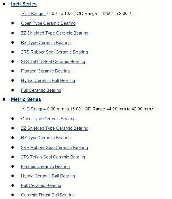 | Cage: | Nylon PTFE UPE PA; | Material: | Si3N4,ZrO2,Sic; |