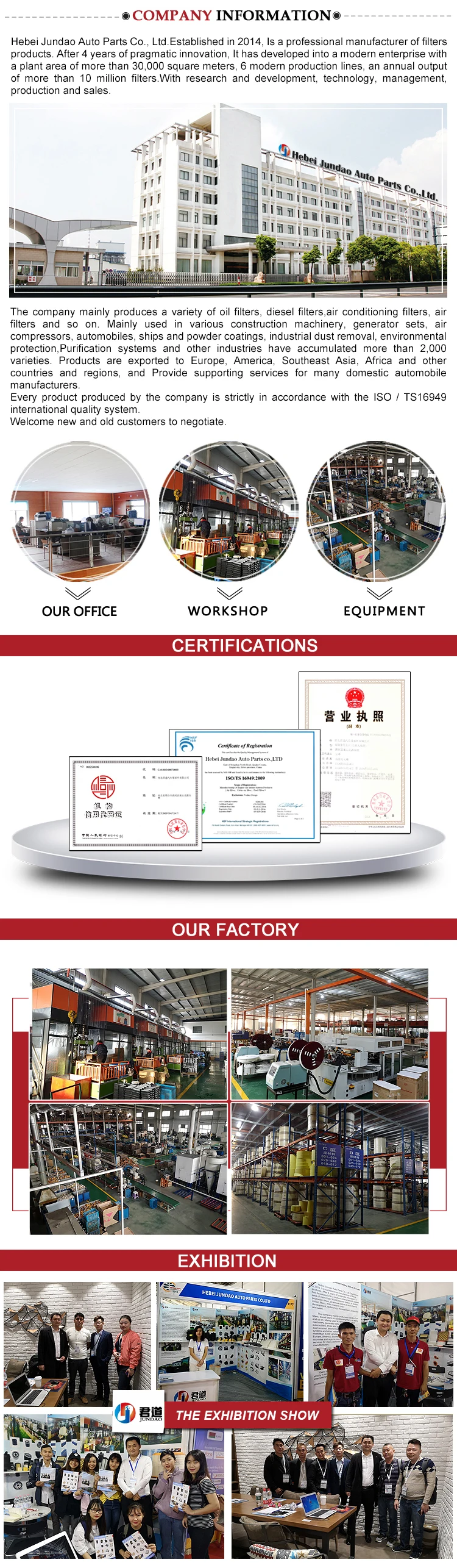 | Supply Ability: | 10000 Piece/Pieces per Week compressor air filter; | Brand Name: | JUNDAO; |
