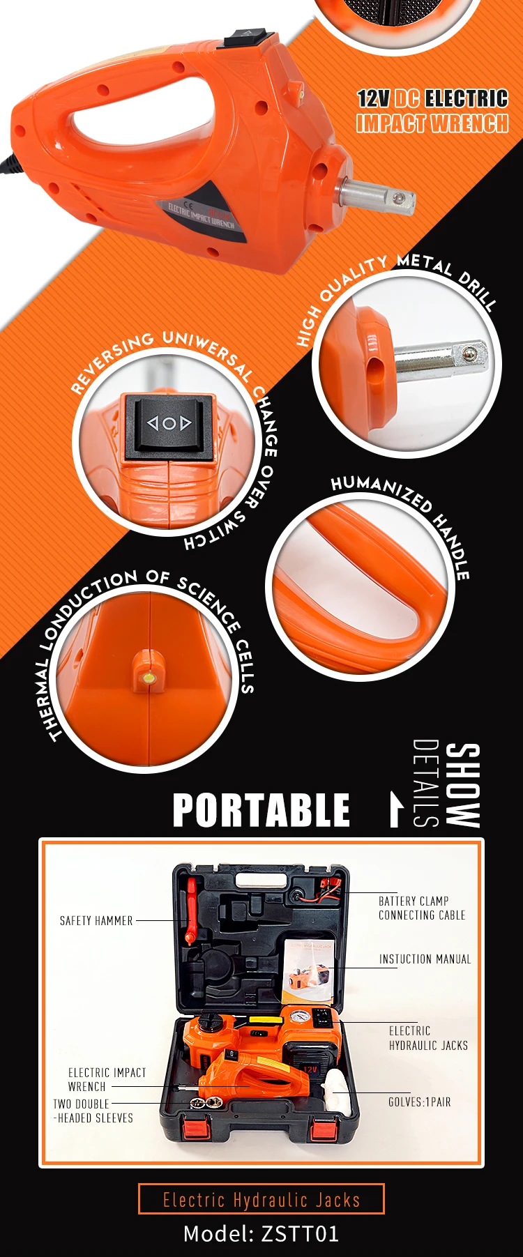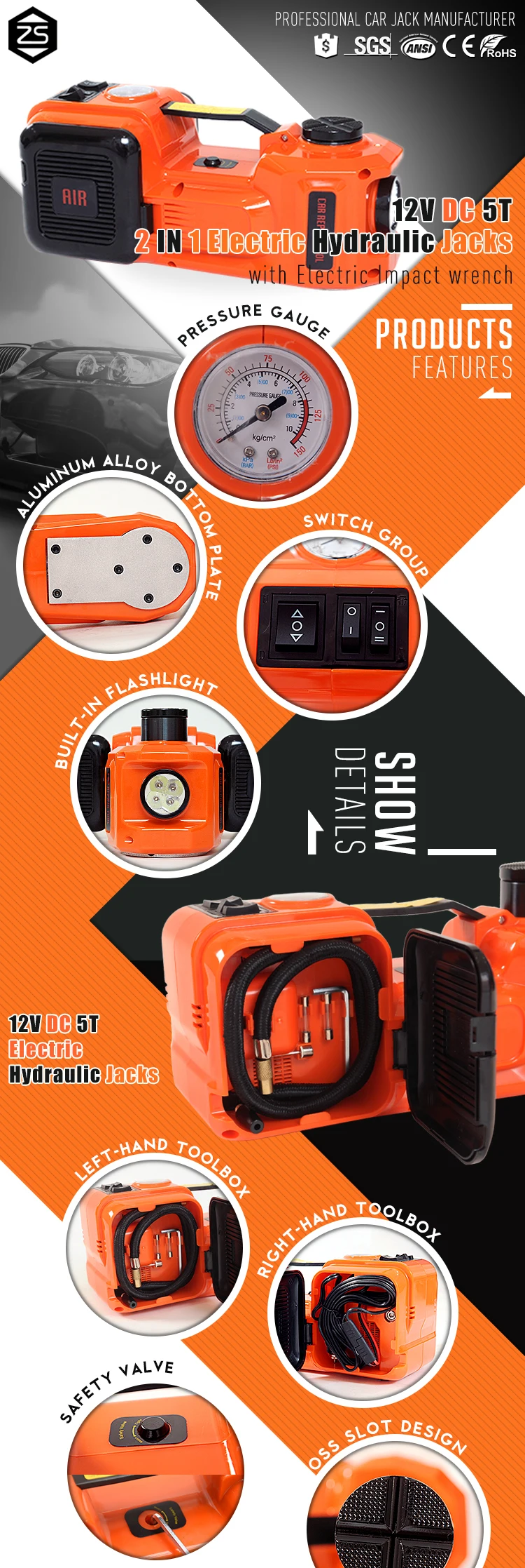 12V DC 5T MULTI-FUNCTIONAL ELECTRIC HYDRAULIC FLOOR JACK WITH ELECTRIC IMPACT WRENCH | |||