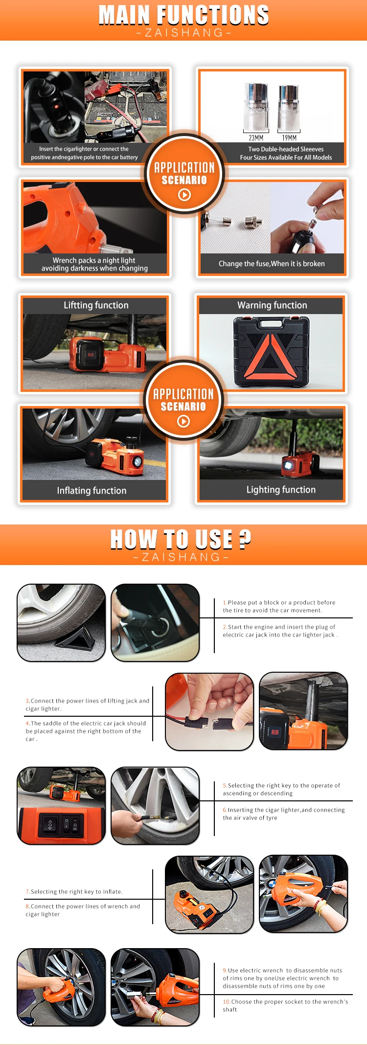 2 IN 1 electric Hydraulic jack: | ZSYT01(2in 1:Lifting+Inflating) | ZSYT02(2in 1:Lifting+Inflating) | |