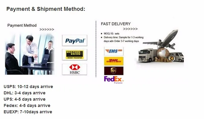 3. Full payment for small quanity,OEM / ODM 30% T/T deposit,70% balance before the shippment.