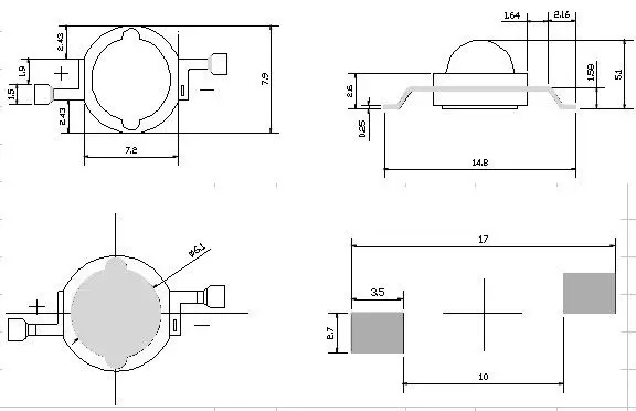 Outline Dimensions of led - Dome Type of 1w/3w led :