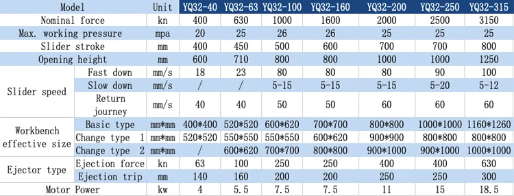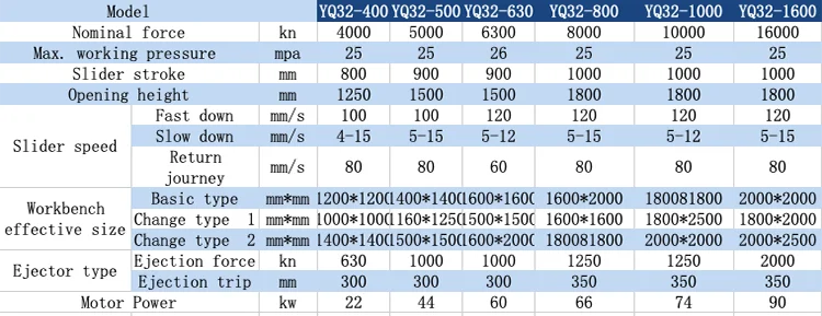The parameter list is not the only standard.20T—2000T can be customized according to customer requirements | |
