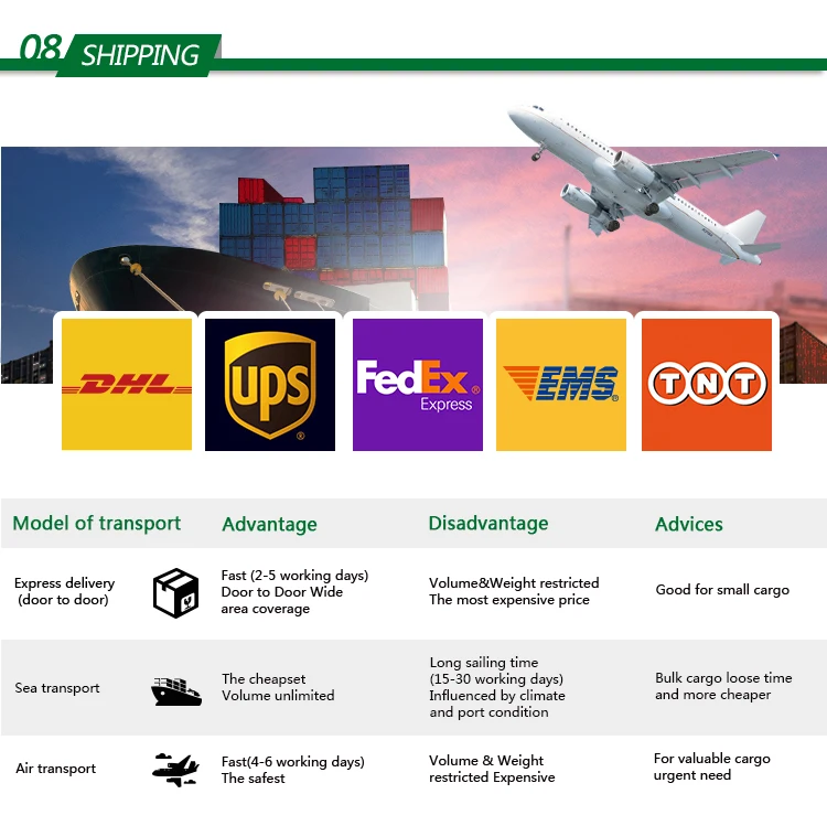 | Shippment | By sea or by air,and by express |