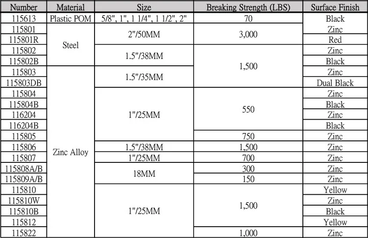 | Material: | Zinc Alloy; | Cam Buckle Finish: | Zinc; |