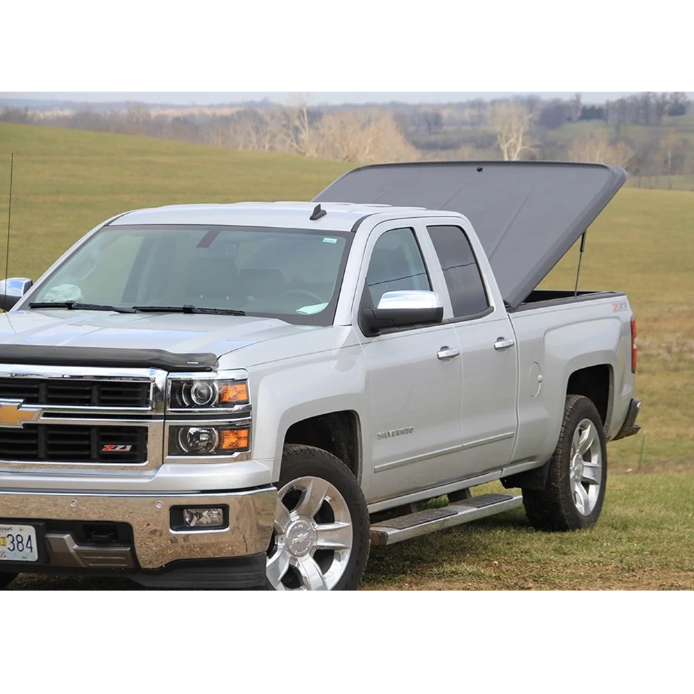 The most refined hard tonneau cover is meticulously designed and engineered, making it the new standard in the aftermarket industry. It has spectacular new features that set it apart. Starting with a completely new design, such as the "X-Effect" structure and it extends to the outer edges allowing water to run off and down the sides of your truck bed. The Anti-UV PE plastic for the cover not just secure against weather but also theft. It also has the new single point locking system controls both locking hinges.