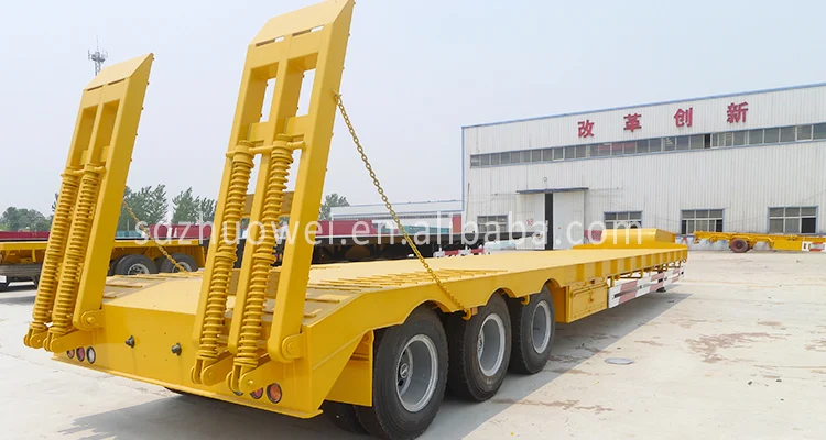 Low-bed semi-trailers are commonly used to transport heavy-duty vehicles such as tractors, buses, special purpose vehicles, rail vehicles, mining machinery, forestry machinery, And other heavily loaded goods, the lower the center of gravity, the better stability and safety, and the greater the ability to transport super-tall loads and to pass overhead obstacles.