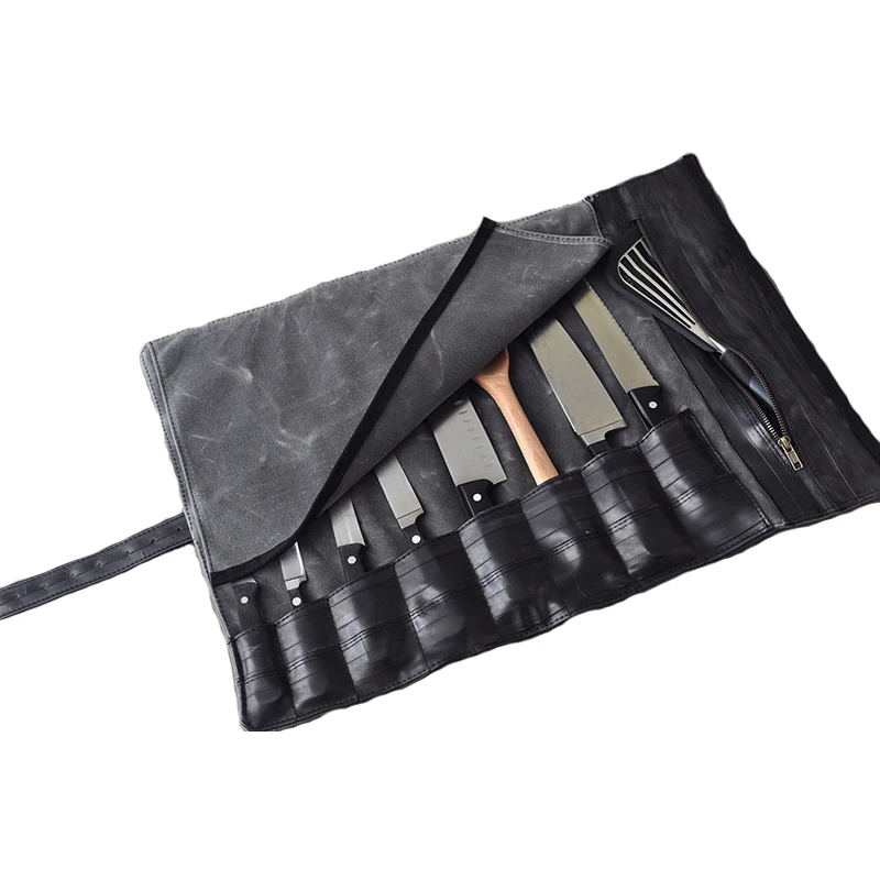 Waxed Canvas Chef Knife Bag Canvas Leather Knife Roll Bag
