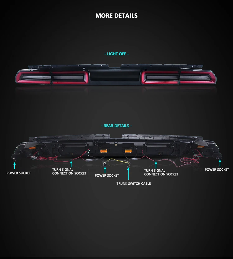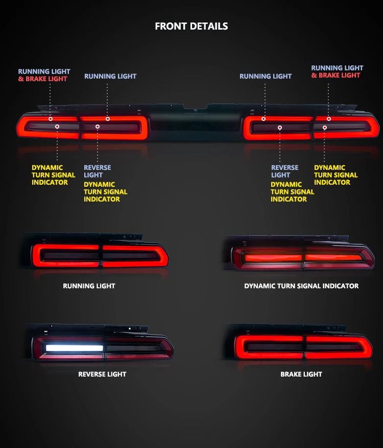 | Car Fitment: | Dodge; | Design 3: | LED Red Sequential Turn Signal; |