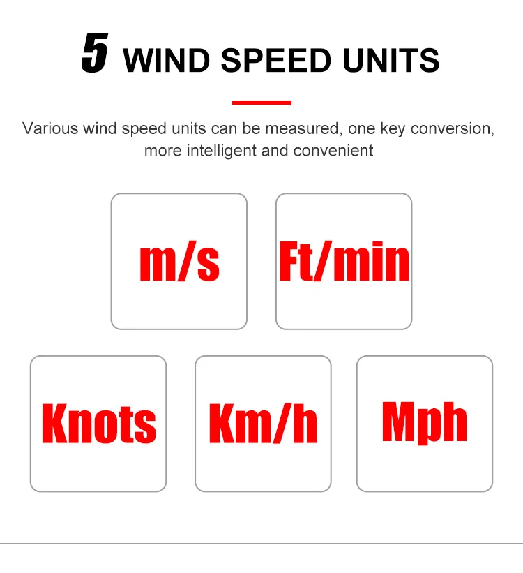| Wind Speed Units | m/s,Ft/min,Knots,km/h,Mph | ||