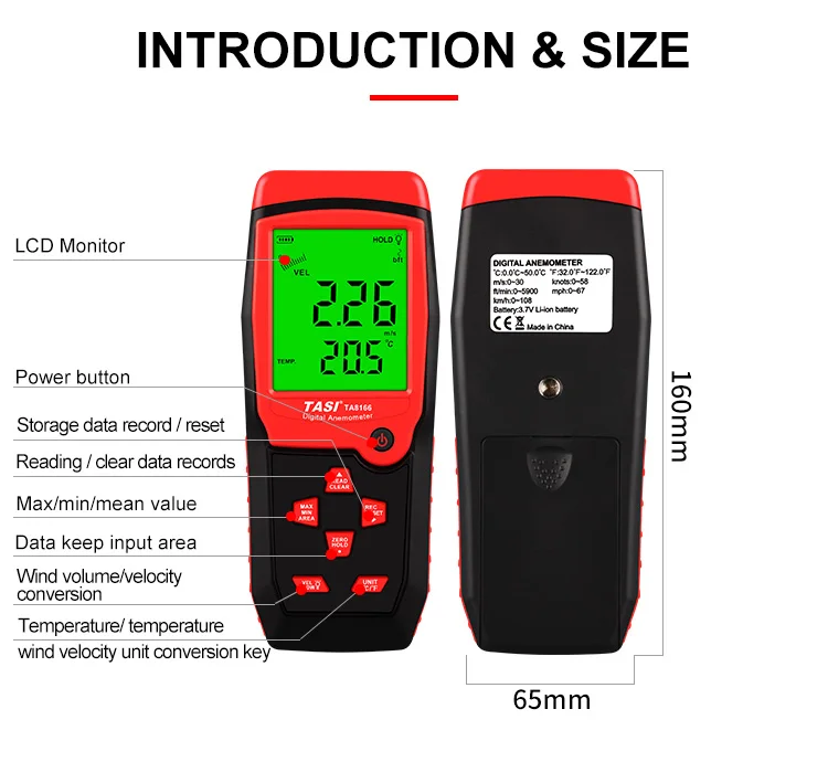 | Dimension: | 160*65*32mm; | Wind Speed Accuracy: | ±1% ±0.1; |