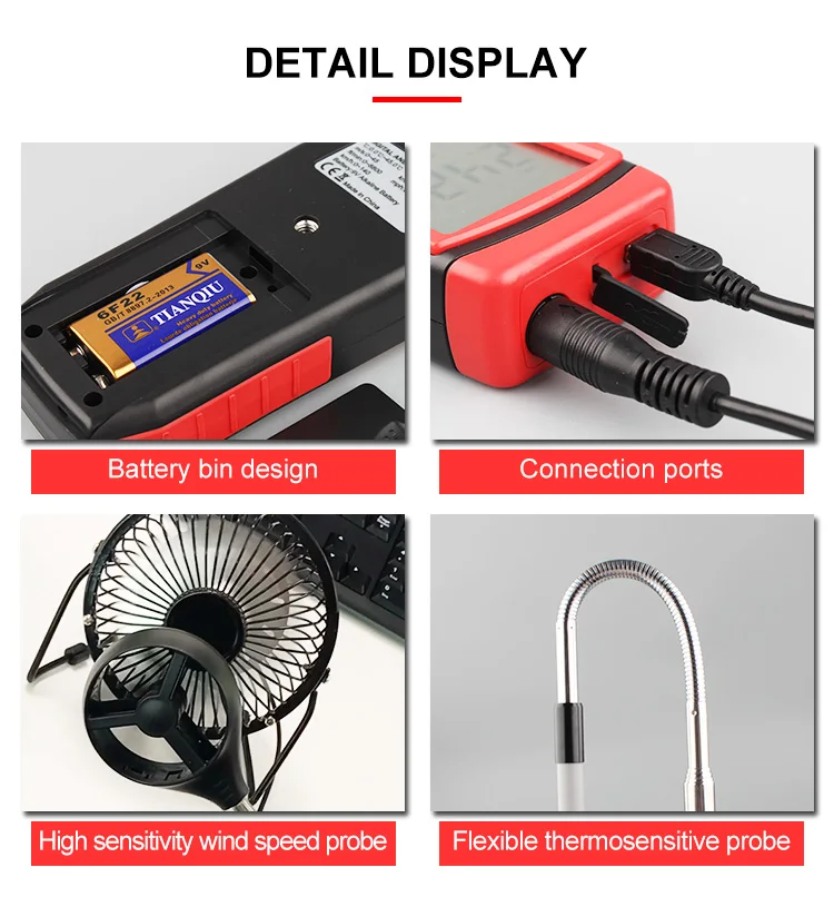 Anemometers are widely used in different fields, such as heating, ventilation, air conditioning, environmental protection, energy conservation monitoring, meteorology, agriculture, refrigerating, drying, labor health survey, clean workshop, chemical fiber and textile, various aspects of wind laboratory, wide range of purposes.
