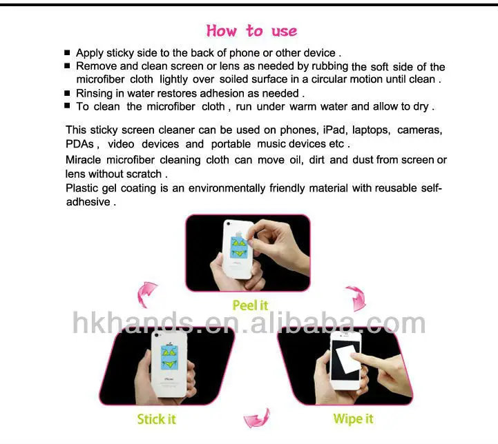 | Product name: | mobile phone sticky screen cleaner; | Payment Terms: | L/C,D/A,D/P,T/T,Western Union; |