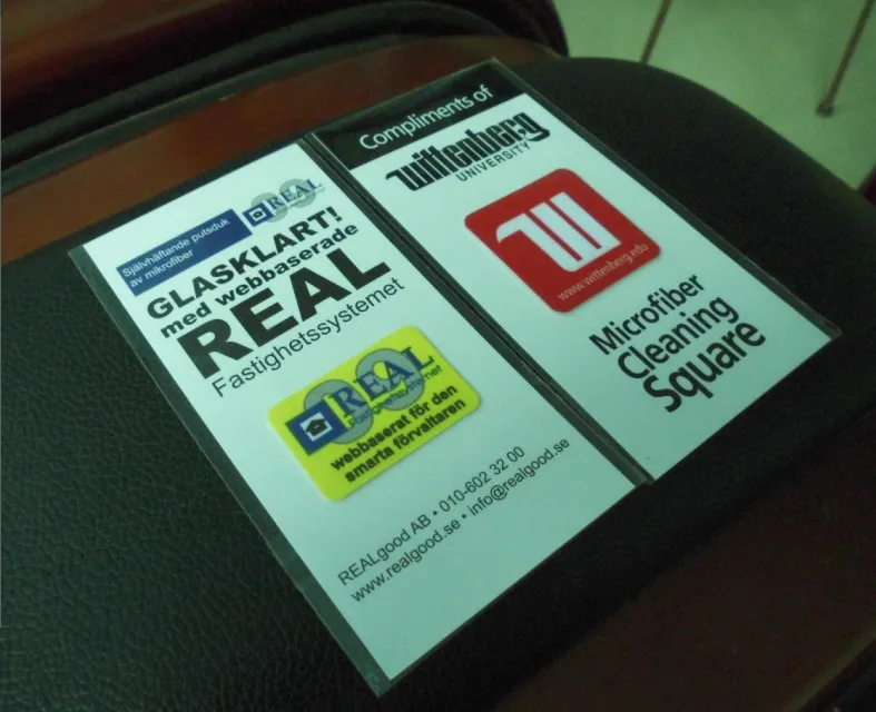 | Material: | Microfiber Cloth+PU gel+300gsm paper card; | MOQ: | 1000 pcs; |