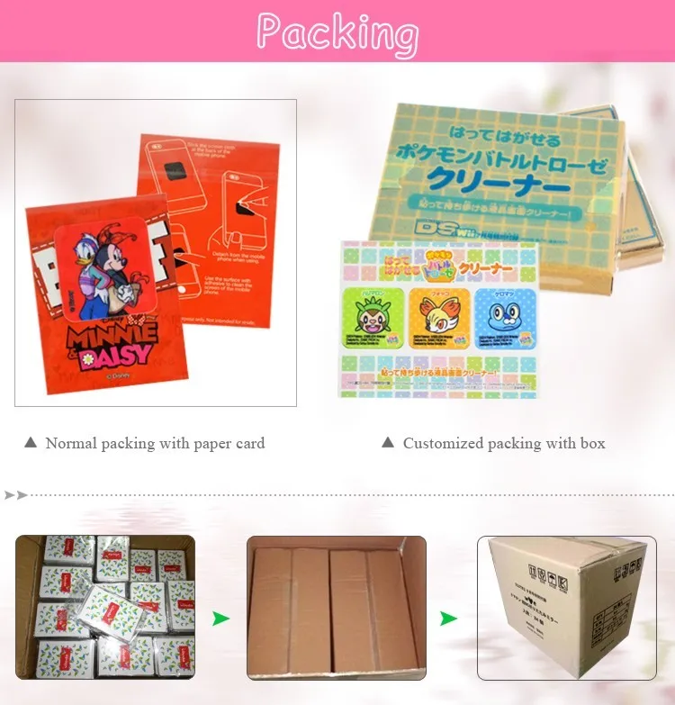 | Size: | Our standard sizes 45*35mm,40*40mm,20*40mm & customized; | Type: | Sticky Screen Cleaner; |