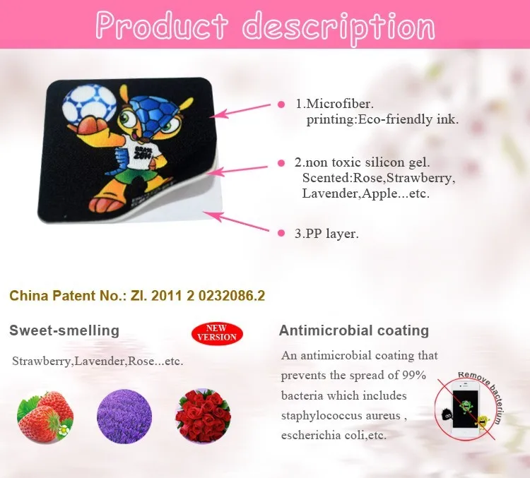 | Payment Terms: | L/C,T/T,Paypal; | Material: | Microfiber Cloth + Sticky Gel; |