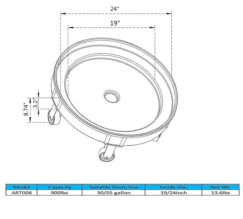 | Inside Diameter: | 19"; | Outside dia: | 24"; |