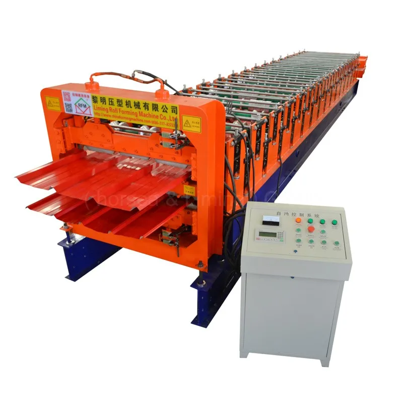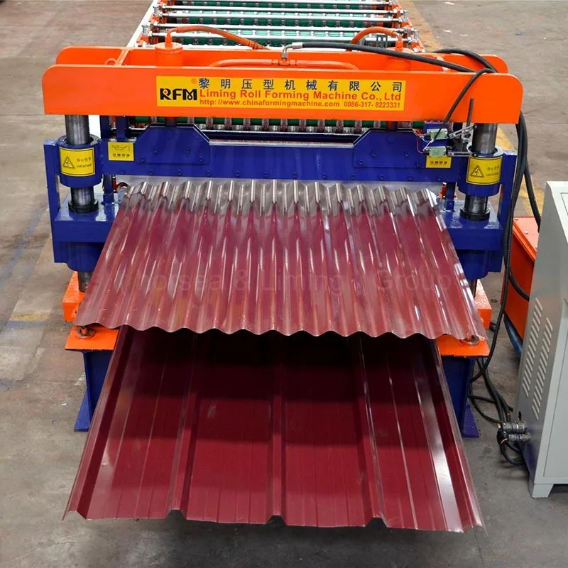 - The double lay forming machine can produce two differents kinds of metal sheet which be trapezoidal panel and the other one is corrugated panel.