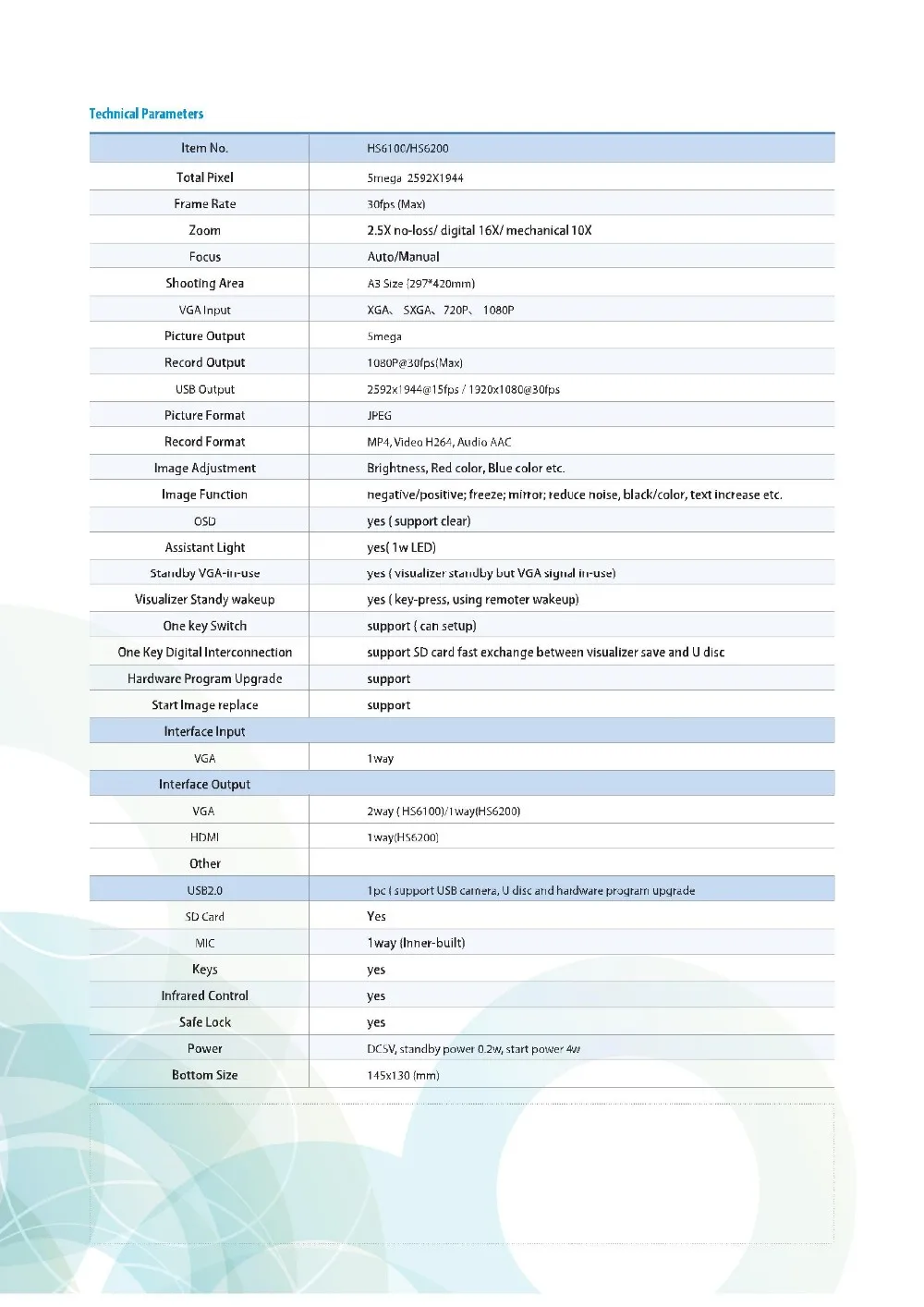 | Line Resolution: | >1000 TVL; | Name: | Education Equipment digital Visualizer; |