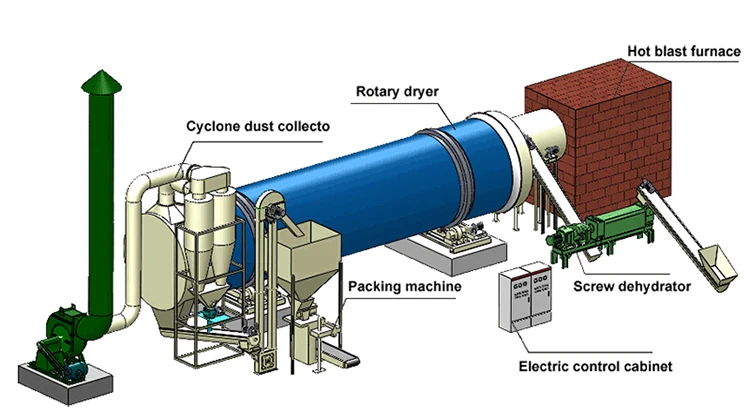 Rotary dryer is the choice for high throughput capacity applications involving high moisture,