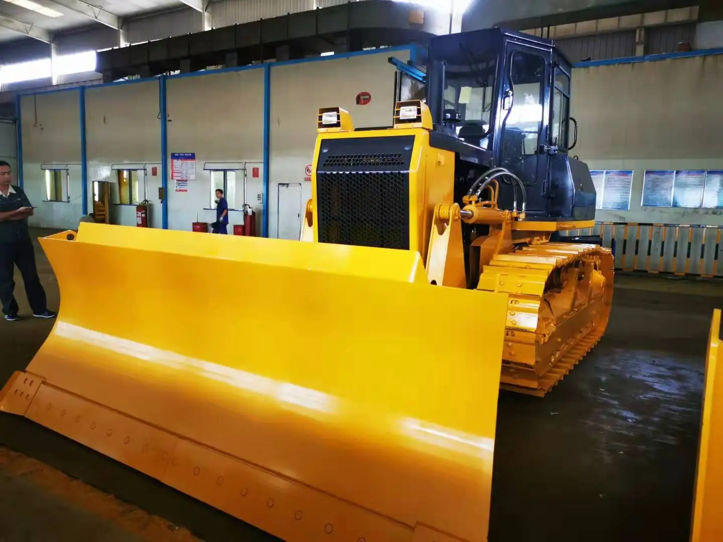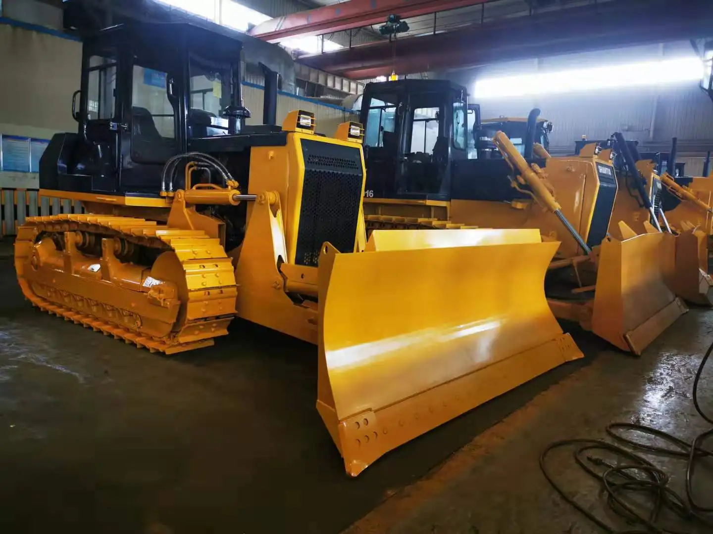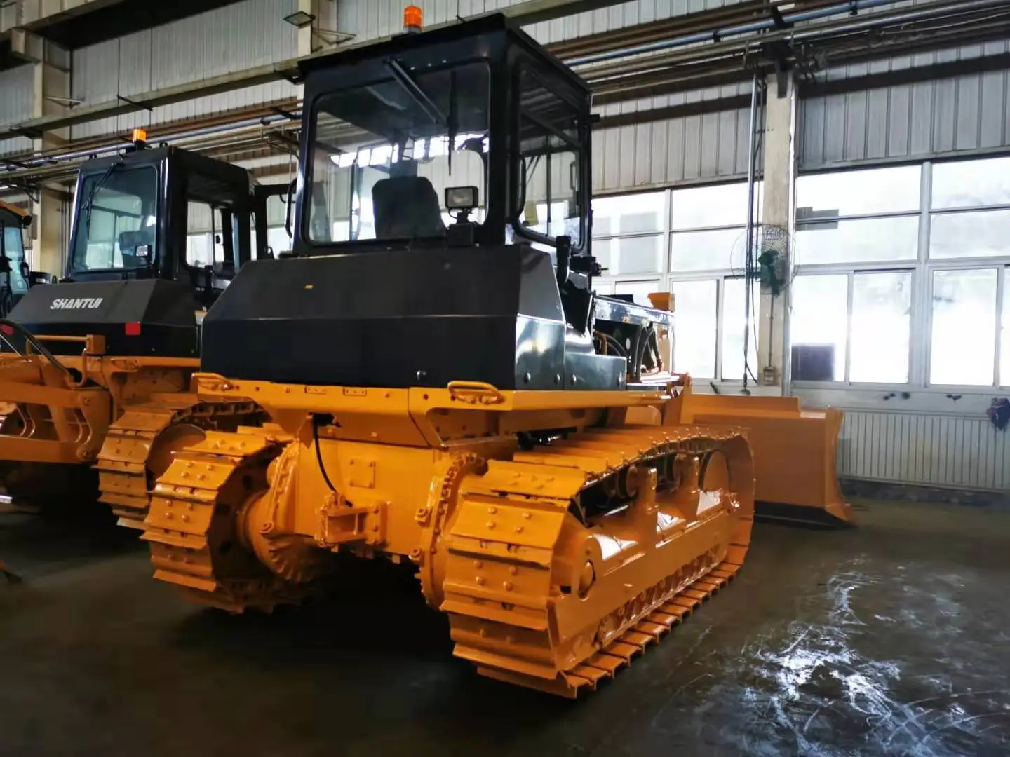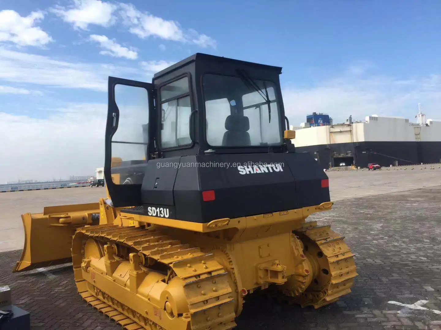 The SD13 bulldozer equipped with a hexahedron damping cab, which features a beautiful design, wide visibility, and comfortable operation, as well as a highly efficient charged engine, which has excellent power, reliability and a long service life. It is also equipped with an improved hydraulic drive system with hydraulic control technology, front-extending anti-rolling frame and an advanced structure, providing reliable quality and convenient and flexible operation. The SD13 uses Shantui's patented central lubrication technology, central pressure measurement and automatic track tensioning, as well as a GPS satellite positioning system.