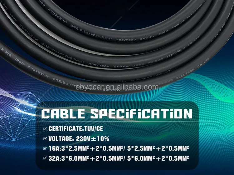 16A/32A Type 2-Type 2 EV Charging Cable With TUV Green Cable