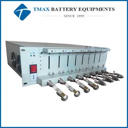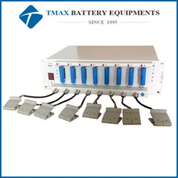 TMAX-JC5V3A is an eight-channel battery analyzer to analyze small coin cells and cylindrical batteries from 6.0 mA to 3000 mA, up to 5V. Each channel of the analyzer has independent constant-current and constant-voltage source, which can be programmed and controlled by computer software. This system provides most applications in battery testing fields such as electrode materials research, battery performance test, small-scale battery formation, capability grading, battery pack testing and etc.