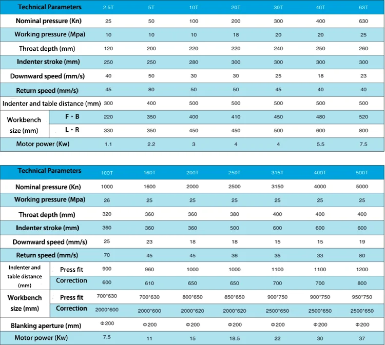 The parameter list is not the only standard.20T—2000T can be customized according to customer requirements | |