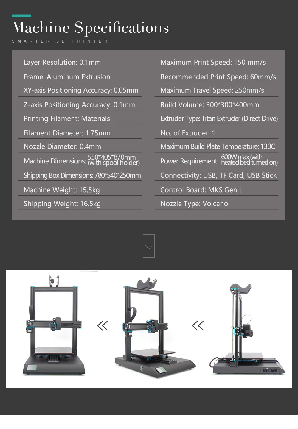| Build Volume | 300 x 300 x 400mm 11.8 x 11.8 x 15.75in |