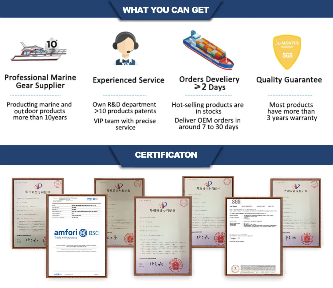 Through 10 years of product integration, we have built a competitive product chain, making us one of the top yacht accessory suppliers in China. We adhere to the principle of customer first, and strive to achieve customer success, and ultimately achieve win-win cooperation. We warmly welcome all customers from at home and abroad to cooperate with us.