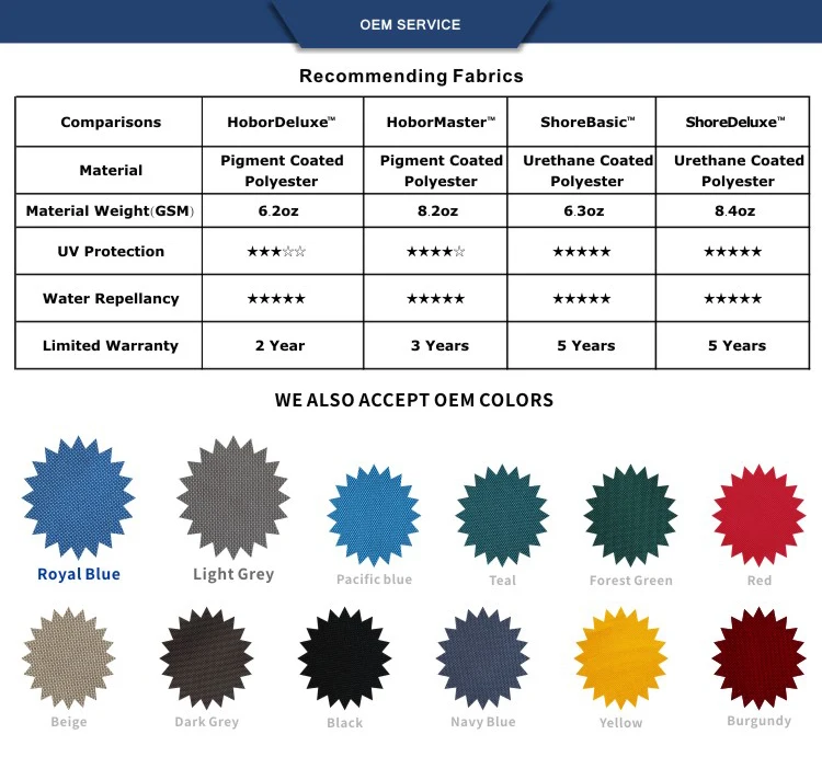 HOMFUL has been focusing on production of marine gear since 2008, mainly bimini top and boat cover. We offer semi-custom and custom-made services. Products cover aluminum and stainless steel bimini tops, with polyester and sΛnbrella fabrics.