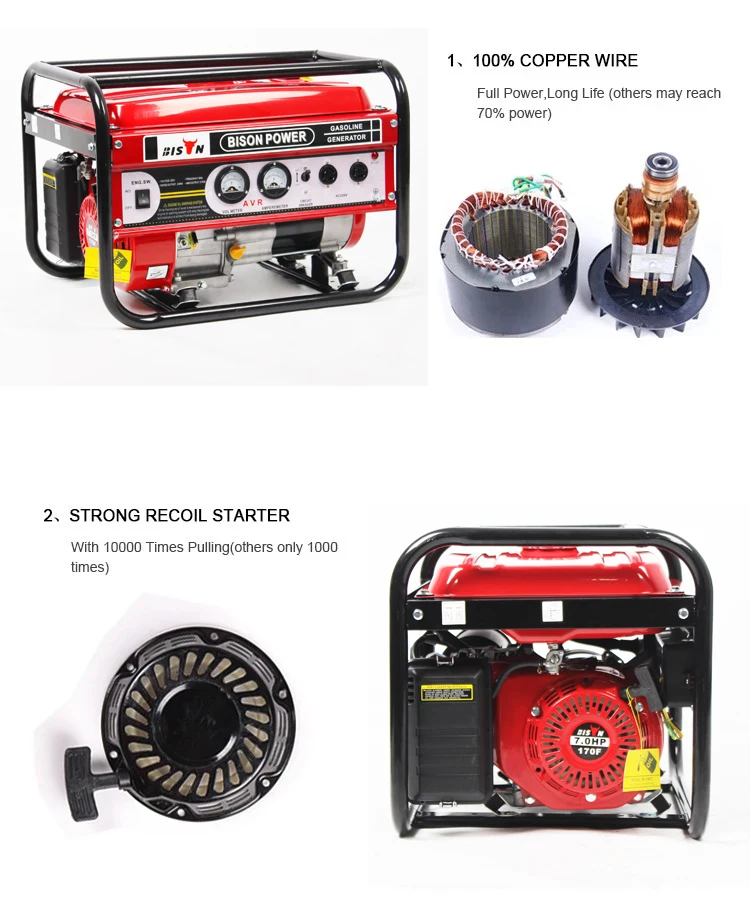 | Model: | 6.5HP; | Packaging Detail: | brown strong carton, generator is protected with ploy bag, wool, 1pc / carton,China Taizhou Bison Machinery 1kw -7.5kw Gasoline Engine Portable Power Electric Gasoline Generator Type For Sale Cheap; |