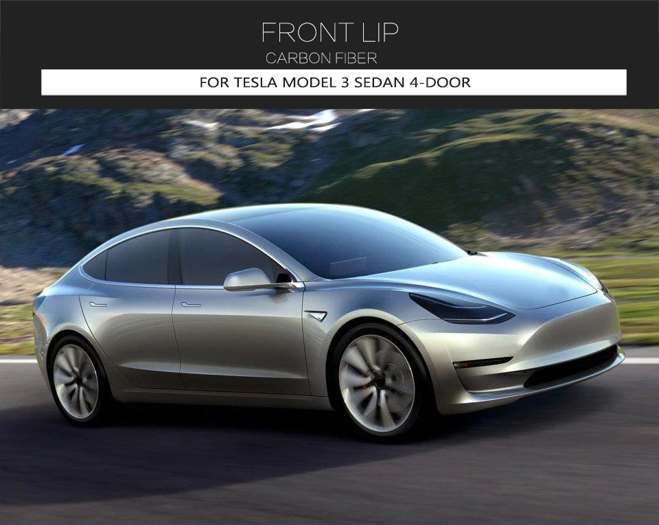 T Style Carbon Fiber Front Lip for Tesla Model 3 Sedan 4-Door 2016-2018