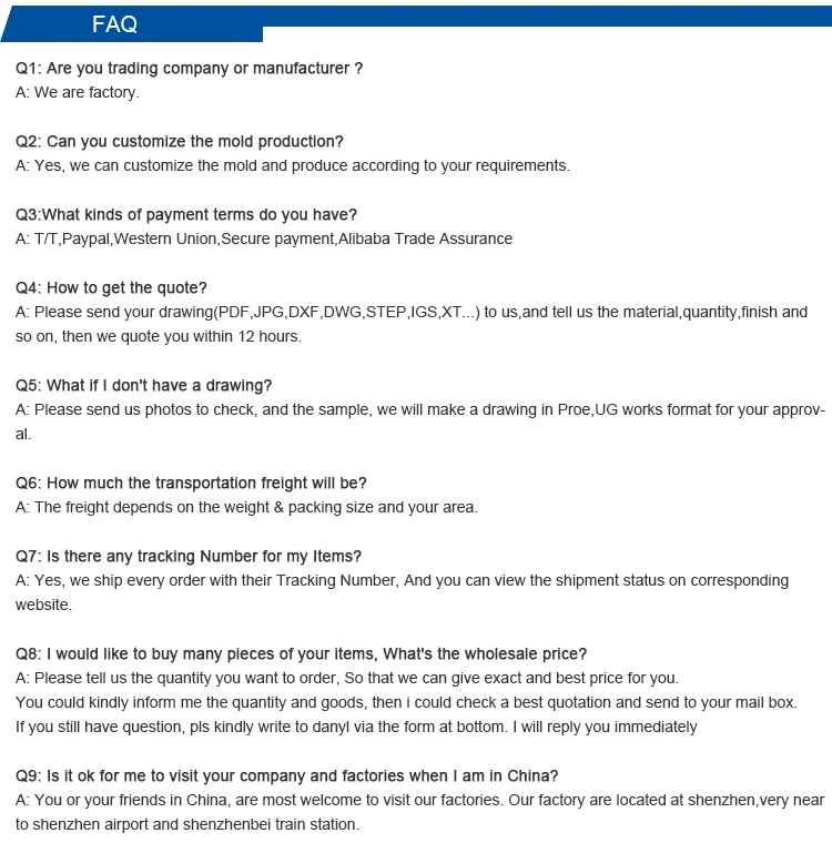 Welcome to send drawings or sample to us for a customized order