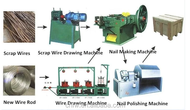 These materials are first drawn to the required diameter of nailing by the "scrap steel wire drawing machine" produced by our factory, and then sent to the "scrap Steel Nailing machine" to produce nails. After polishing by the "polishing machine", they can be packaged and put into production. Home-run factories only need 20 square meters workshop.