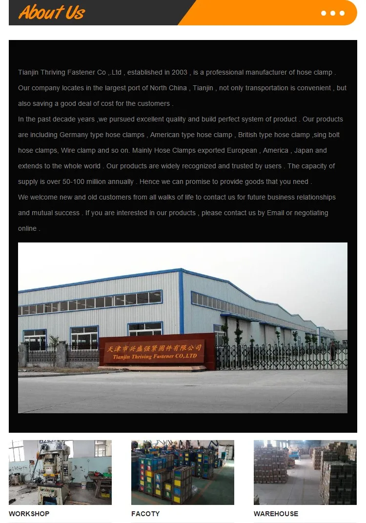 A:We are hose clamp factory in Tianjin,China.