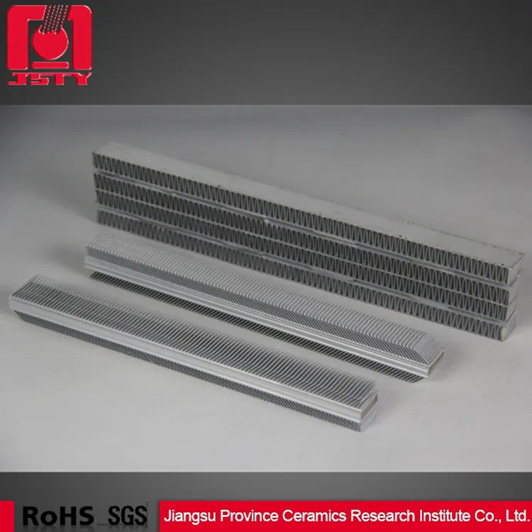 PTC heat sensitive ceramics is a kind of semiconductor ceramic based barium titanate, has positive temperature constant, constant temperature heating, automatic temperature control and other characteristics, widely used in air conditioning heater, integrated ceiling heaters, dryers and other household appliances. The products are superior in performance and have wide application. Jiangsu Ceramic Research Institute Co., Ltd. began to engage in research and development of PTC thermal sensitive ceramics since 80s of last century. Currently has an annual output of 200 million pieces of various types of PTC heating element .