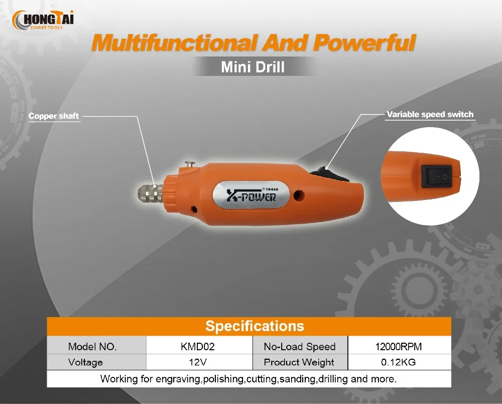 -Working for engraving, polishing, cutting, sanding, drilling and more.