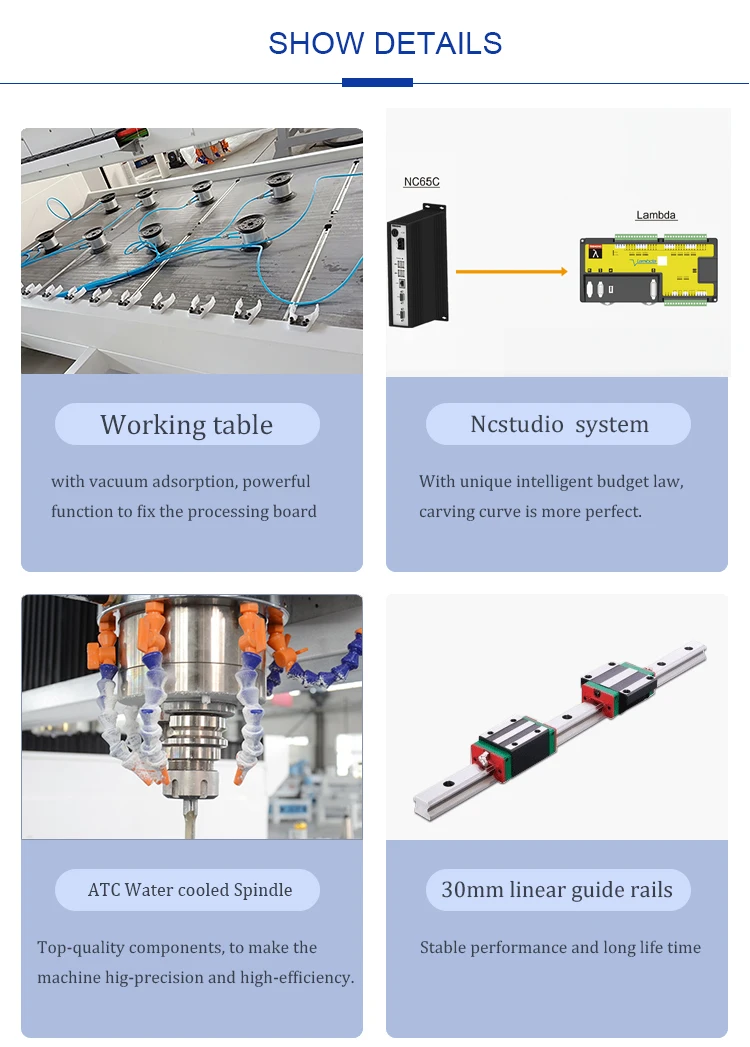 5) Spindle:ATC 5.5KW/7.5KW water cooled spindle