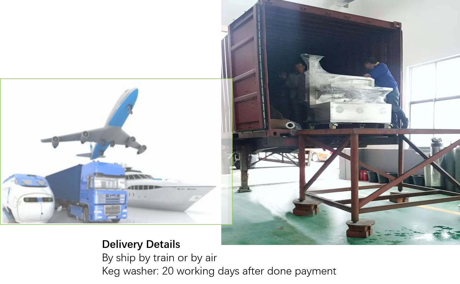 | Port: | shanghai; | Packaging Detail: | 2 Head Stainless Steel semi-auto Keg Washing Machine Keg Washer Bulk Cargo: Standard wooden case which can avoid any clash during the sea or air transportation in case of causing damage to the equipment's surface. Container Cargo: The equipment will be bound firmly and won't easily swing to the side, up or down.; |