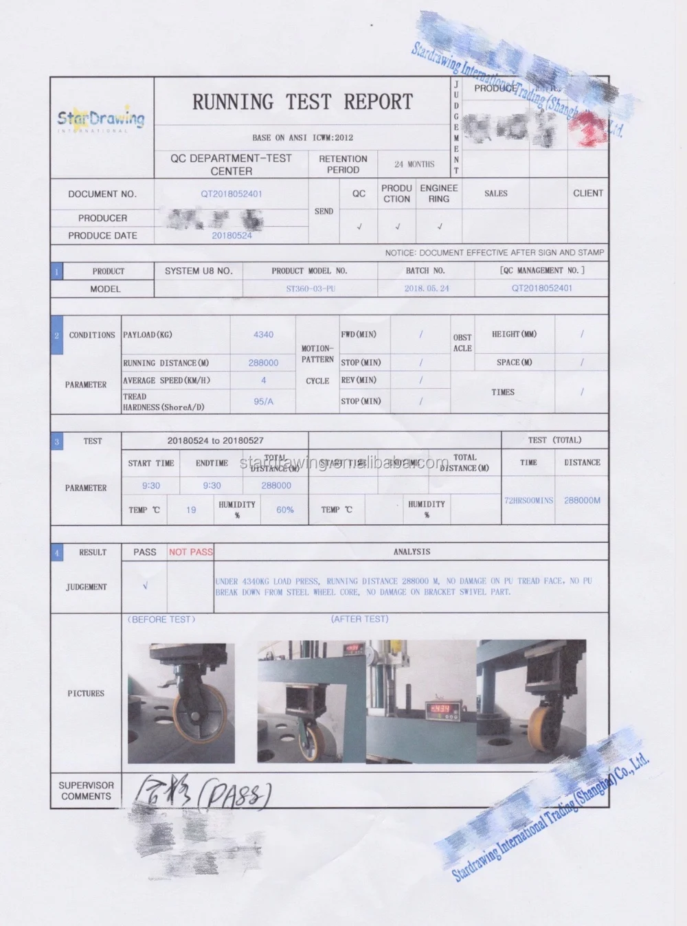 STAR : We tell you that we have variety of international quality certificates, we have a very strict quality control system, we do a series of caster tests before shipping. Right, you still have no idea about our quality. Therefore, no hesitate! Just place a trial order from Stardrawing. You will not only trust the quality of casters, but also trust the character of Stardrawing people since then.