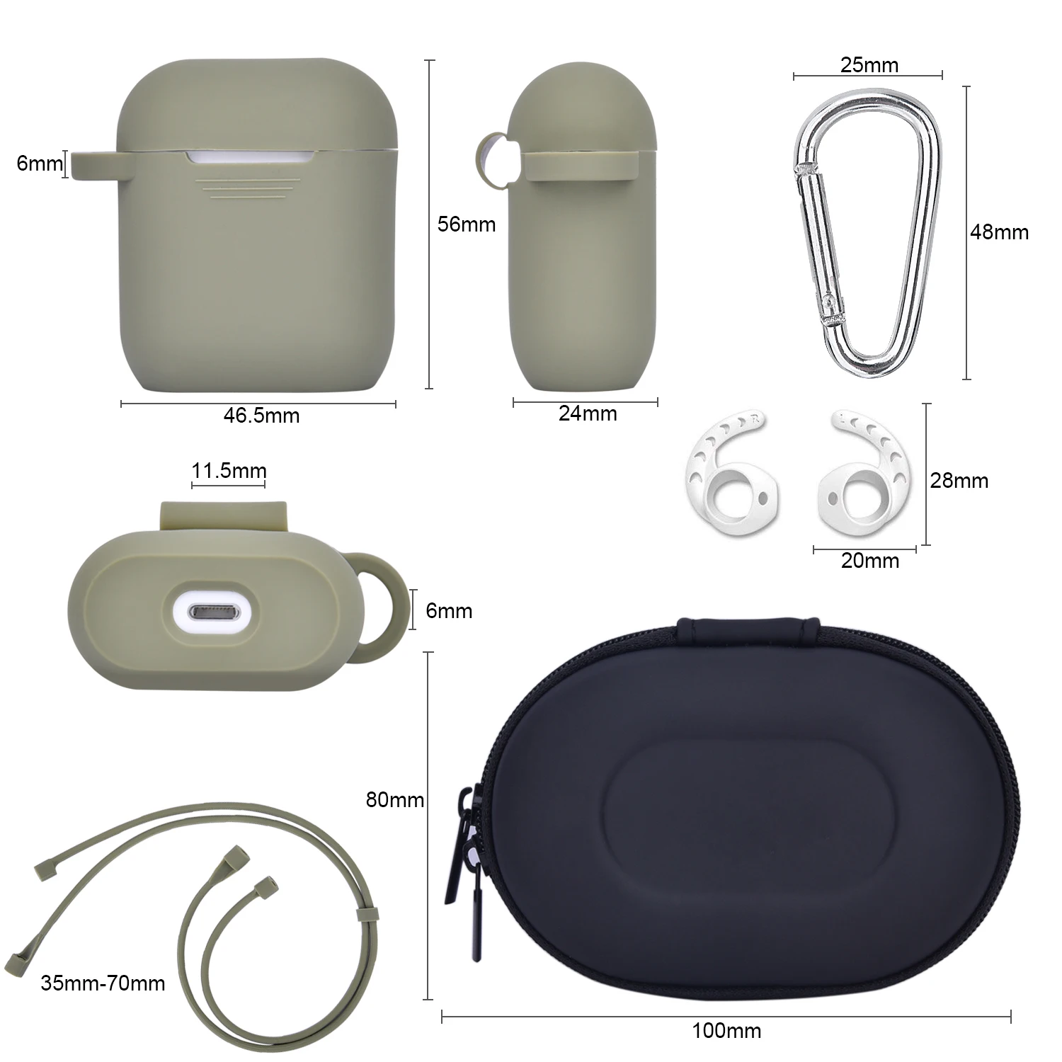 | Single package size: | 5X5X5 cm; | Color: | Black, Blue, Brown, Gray, Green silicone case cover for airpods; |