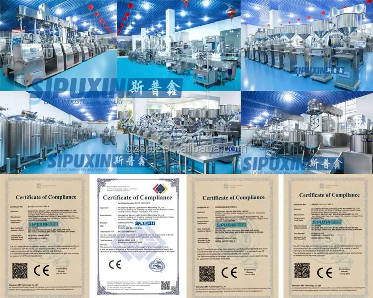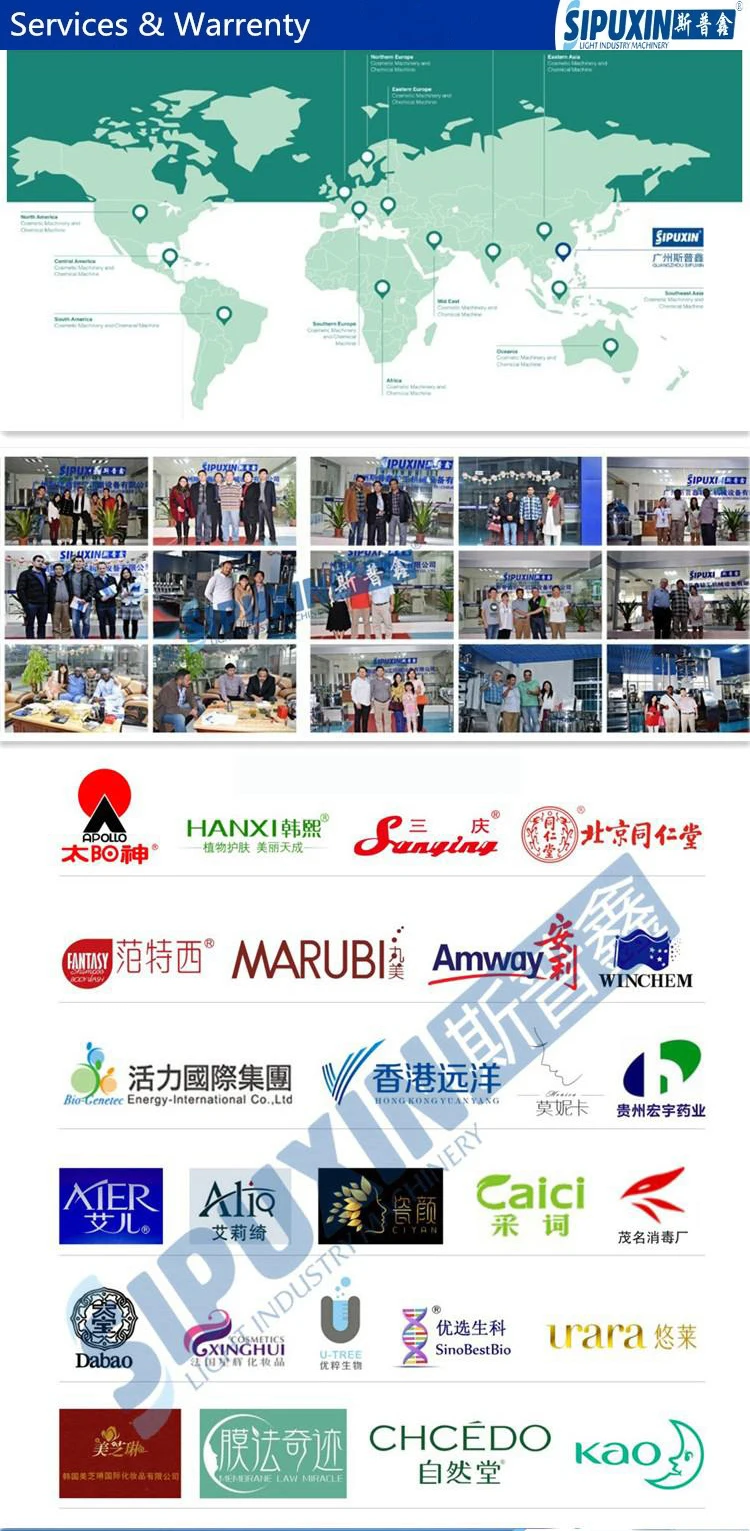 We, Guangzhou Sipuixin Light Industry Machinery Co., Ltd, locates in Guangzhou, China -- the core technology area for machinery design and manufacture. Based on Jiangsu light industry Research Institute and Germany top homogenizing technology, with solid backing from Yangzhou Sipuxin Light Industry Machinery Equipment Factory, Sipuxin is professional manufacturer for cosmetic machines, pharmaceutical equipments, food machineries and water purify equipments.