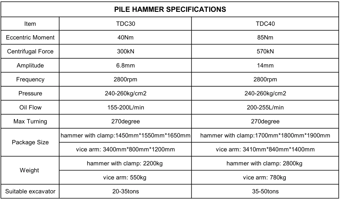 Vibro pile hammer specifications: