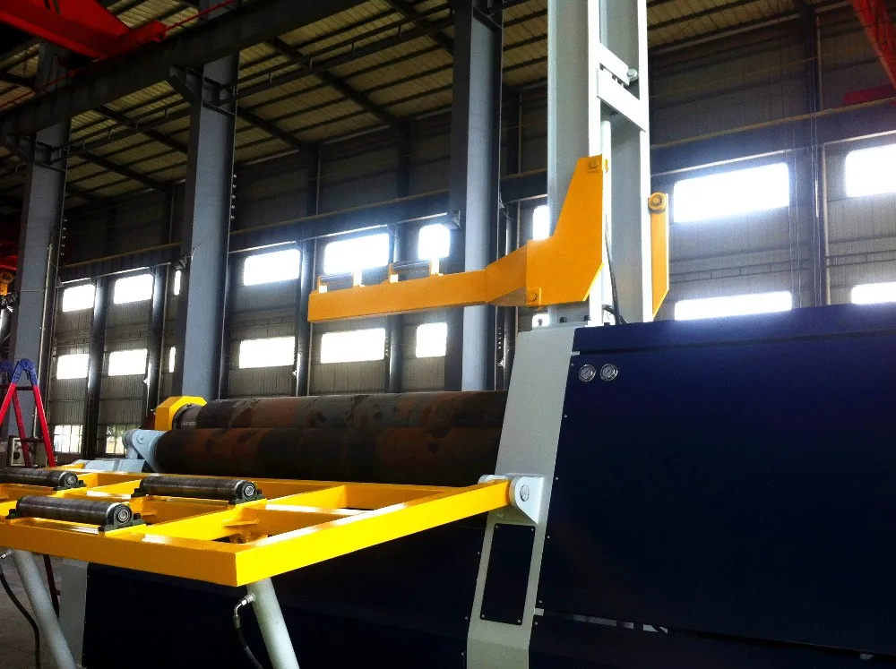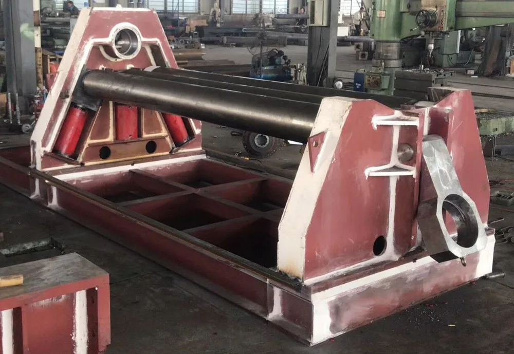 There is a overturning bearing on the left frame, and the overturning bearing can be driven by the cylinder to open & close with the upper roller head